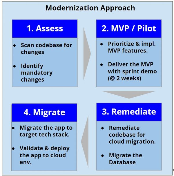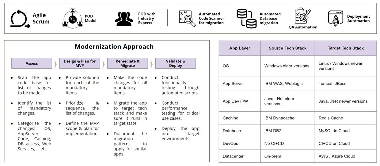 Our industry experts have 20+ years of experience in modernization & migrating the legacy apps to cloud. We have time tested & robust modernization & migration blueprints which will help the customers to migrate the apps with high quality & cost effective manner. The POD with industry experts will design & deliver the app modernization. A 7 Check-point framework ensures the migration / modernization is executed with high quality & effective cost & timelines.